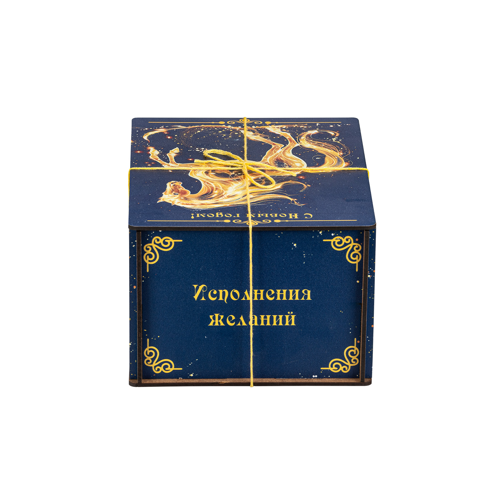 Креативный подарочный набор, который одинаково удачно подойдет как для поздравления подростка, так и для совсем взрослого сластены. Этот подарок представляет собой темно-синий деревянный ящичек, перевязанный контрастной золотой веревочкой. Со всех сторон упаковка украшена поздравительными надписями, а на крышке гордо красуется изображение символа наступающего года - грациозного золотистого коня. В состав подарка входит килограмм самых разнообразных сладостей: батончики, суфле, шоколадные конфеты с начинками на любой вкус - а также небольшой памятный сувенир в виде символа года. Этот подарок можно вручить как на новогоднем мероприятии в школе, так и на корпоративе в крупной компании. Такой презент уж точно придется по душе!