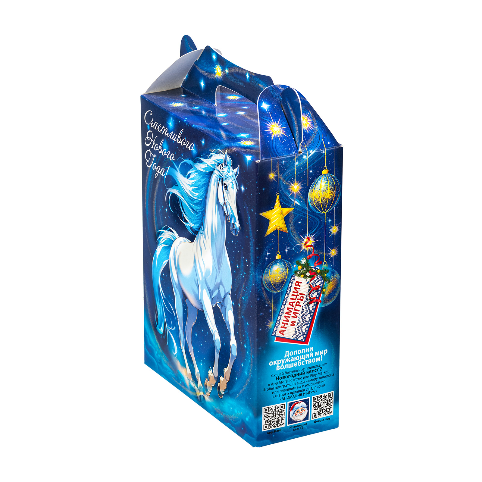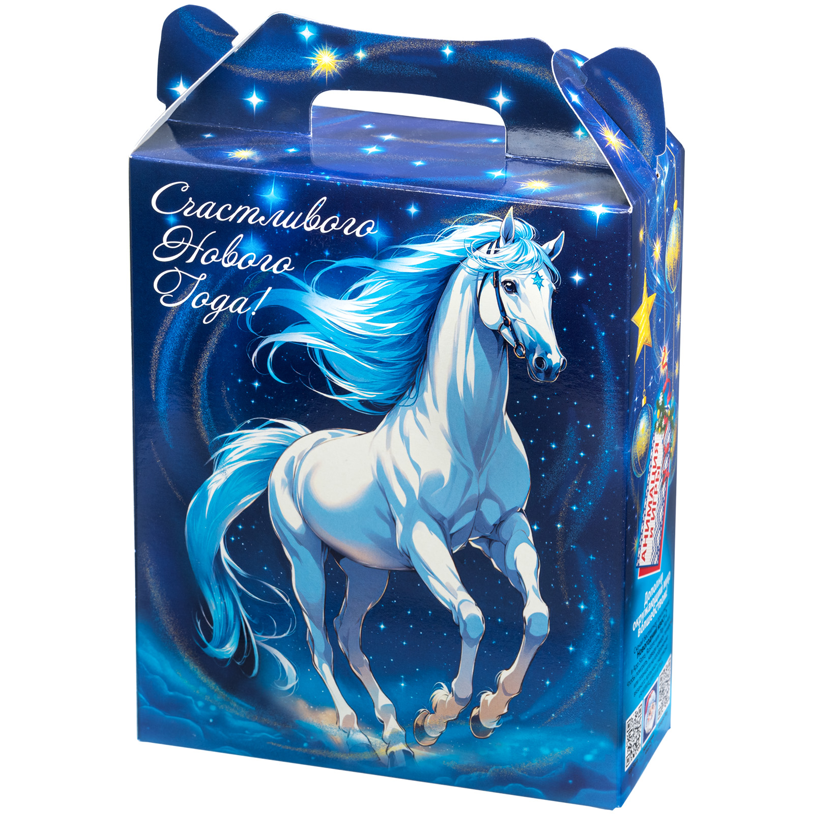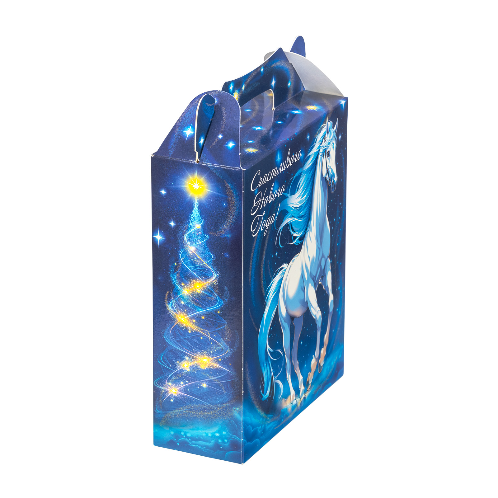 Ищете новогодний сладкий подарок для мероприятия в детском учреждении или крупного корпоратива? Хотим представить вам подарочный набор “Синегривка”! Это небольшая завораживающая коробочка с удобной ручкой. Подарочная упаковка выполнена в разных оттенках синего цвета, на передной части есть объемное изображение с символом наступающего года - грациозной волшебной лошадью, рысью мчащейся через заснеженную долину. Помимо яркой упаковки, подарок может удивить и своим наполнением - в его состав входят разнообразные лакомства на любой вкус, а также небольшой памятный сувенир, с которыми новогодняя атмосфера еще долгое время не покинет ваш дом!