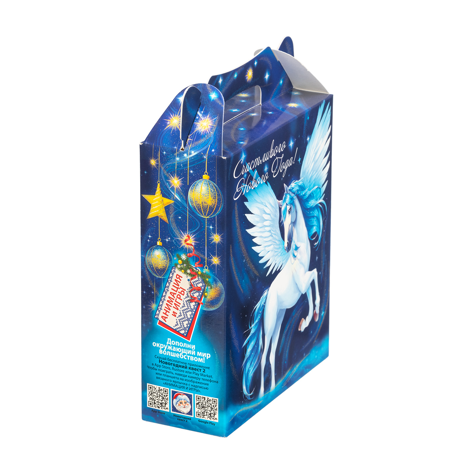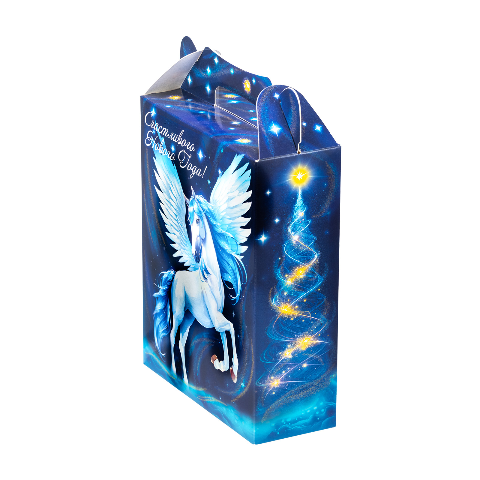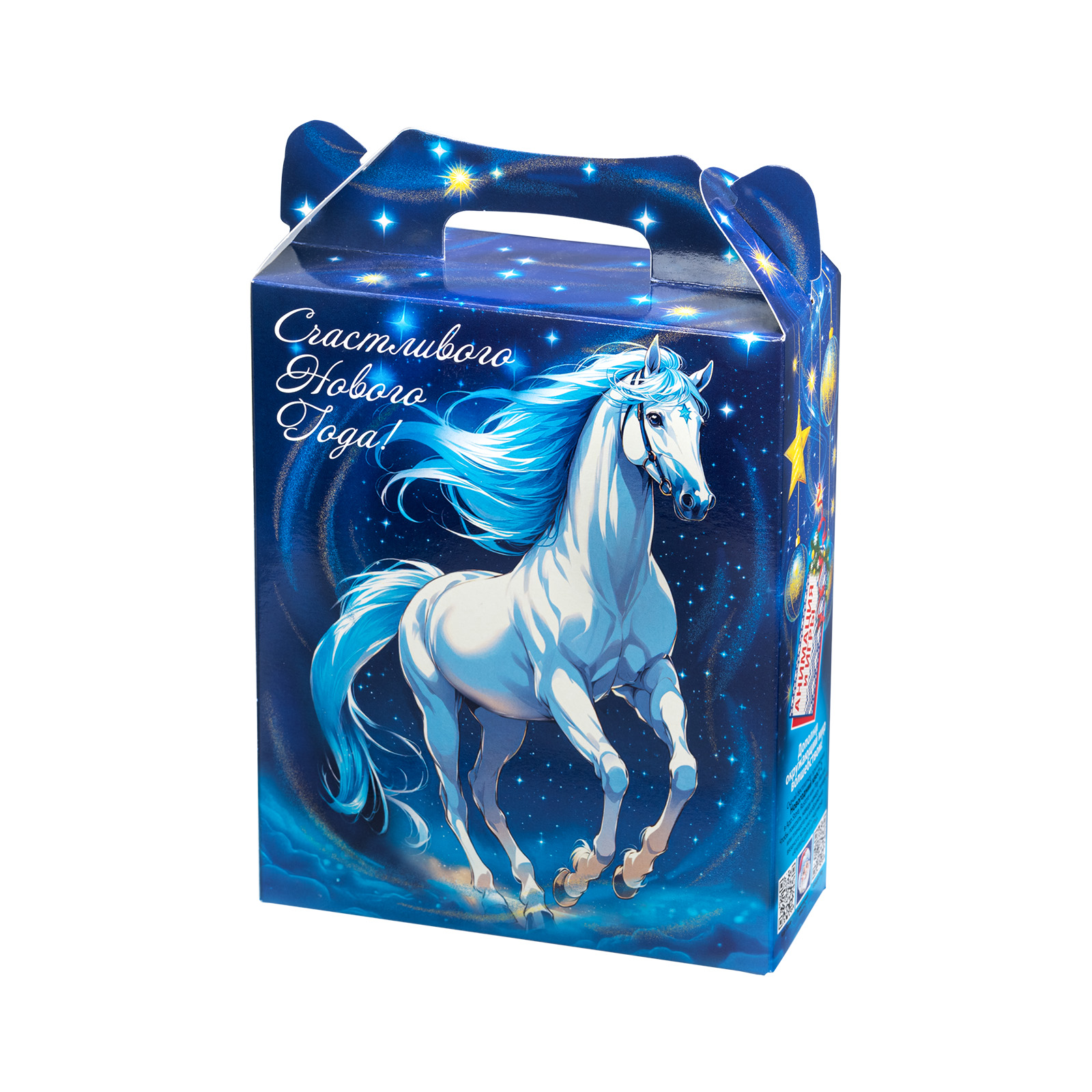 Ищете новогодний сладкий подарок для мероприятия в детском учреждении или крупного корпоратива? Хотим представить вам подарочный набор “Синегривка”! Это небольшая завораживающая коробочка с удобной ручкой. Подарочная упаковка выполнена в разных оттенках синего цвета, на передной части есть объемное изображение с символом наступающего года - грациозной волшебной лошадью, рысью мчащейся через заснеженную долину. Помимо яркой упаковки, подарок может удивить и своим наполнением - в его состав входят разнообразные лакомства на любой вкус, а также небольшой памятный сувенир, с которыми новогодняя атмосфера еще долгое время не покинет ваш дом!
